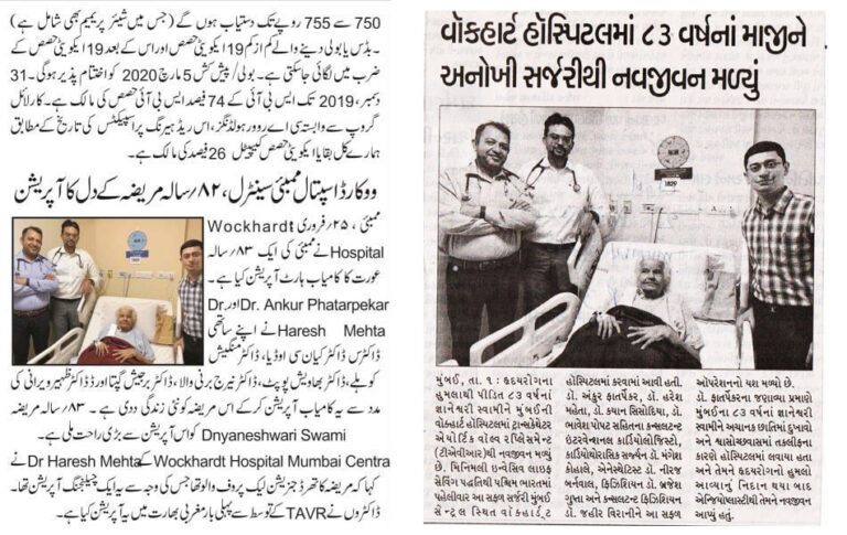 Dr Haresh Mehta, Consultant Interventional Cardiologist, Wockhardt Hospital Mumbai Central added, “A catheter was used to manoeuvre and place the new 3rd Generation Leak-Proof Valve, which slips inside the old valve. Once placed, the new valve expands and pushes the damaged valve parts out of the way and regulates the blood flow into the aorta. The shallow implant of the valve was carried out, placing it high up due to the lack of calcium in the patient. 3rd GenerationLeak-Proof Valve is the first-of-its-kind valve used in Western India at Wockhardt Hospital. It helps improve the survival rate of the patient. Normally in such cases, there are 15% to 20 % chances of death. With the help of new technology, chances have come down to less than 1%.”The procedure took about 45 min. “In this procedure, there is only a small puncture instead of a large incision and it is less painful. There is a minimized hospital stay and a speedy recovery. In 3 Days, the patient could breathe freely, and her co-morbidities have been tackled,” said Dr Ankur Phaterpaker.